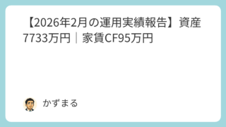 資産レポート 【2026年2月の運用実績報告】資産7733万円|家賃CF95万円 【2026年2月の運用実績報告】資産7733万円|家賃CF95万円はじめにこんにちは。「2000日後にリタイアする社畜」のかずまるです。この記事を書いている時点でリタイアまで1737日です。今日は2026年2月度の資産レポートを公開します!... 2026.03.10 資産レポート