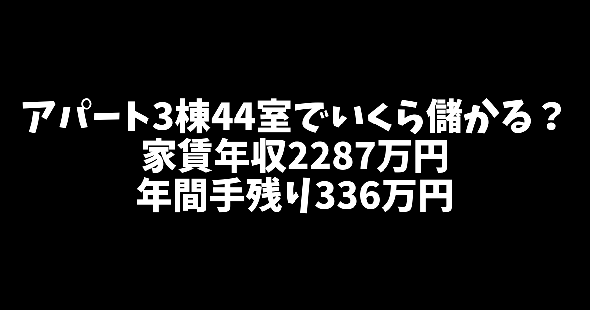 【総融資額2.7億円】アパート3棟44室を保有する大家が年間の予想収益を計算してみた。手残りはなんと336万円!