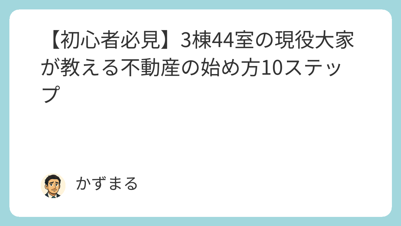 【初心者必見】3棟44室の現役大家が教える不動産の始め方10ステップ